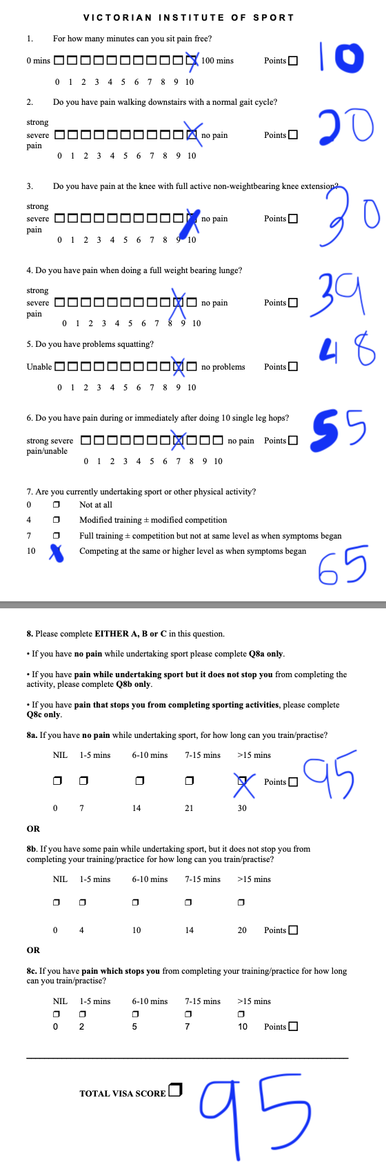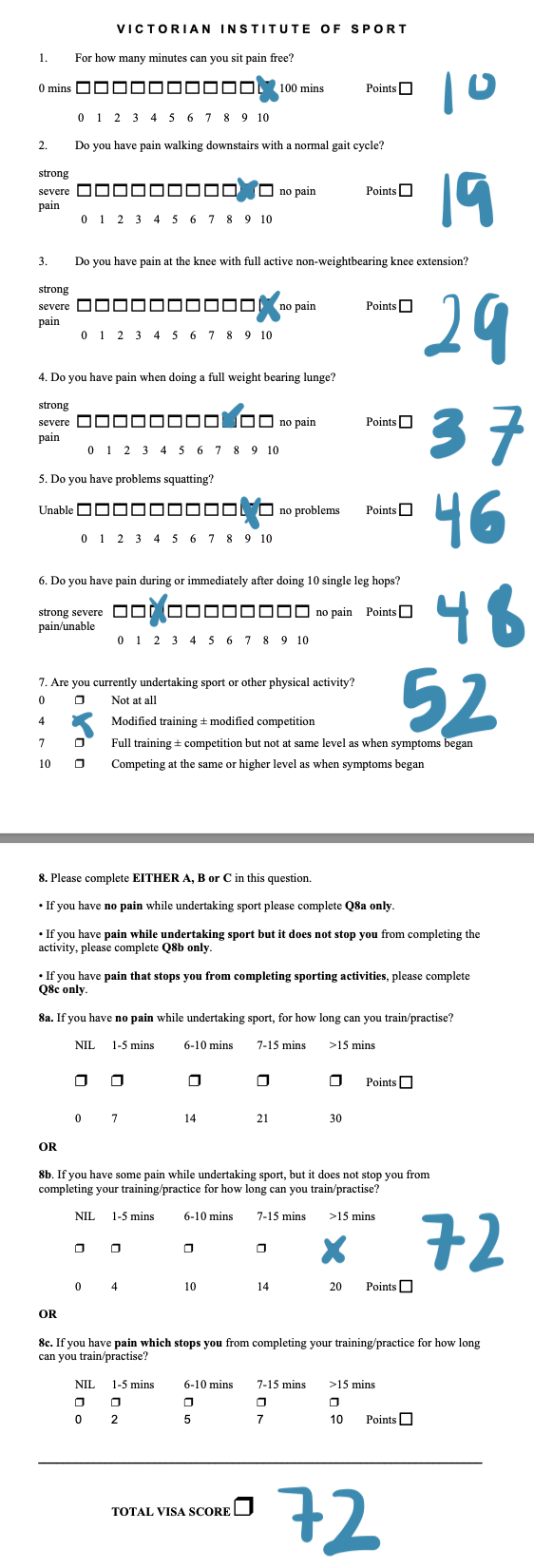 Given all the points above, I even filled out a questionnaire to put my feelings into a quantitative measure of readiness. This is known as the VISA-P.